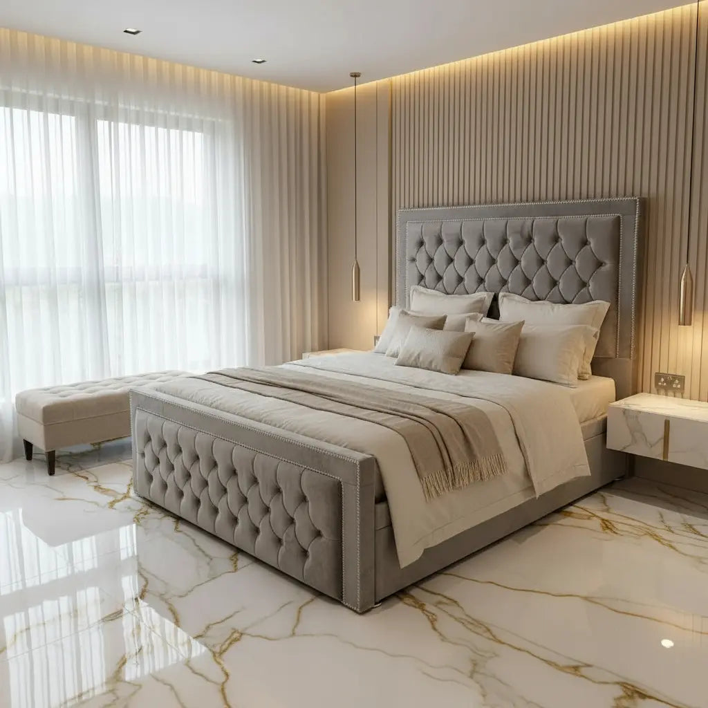 Knightsbridge Plush Velvet Ottoman Bed – Bespoke Handcrafted Design FIL