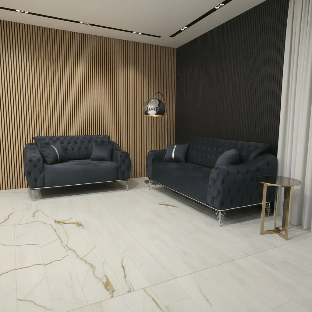 Monalisa 3+2 Seater Sofa Set – Steel Velvet with Chrome Detailing & Legs | Luxury Modern Sofa