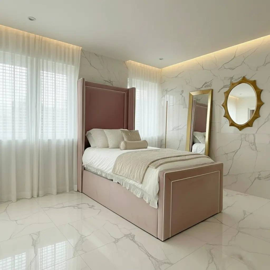 The Princess Bedframe is designed not only for aesthetics but also for unmatched comfort. With its plush velvet fabric, this bedframe adds a touch of sophistication to any bedroom. The wingback design provides extra support and a cozy feel, making it perfect for relaxing at the end of a long day. The luxurious texture of the fabric feels lovely against the skin, making your sleeping experience more enjoyable.