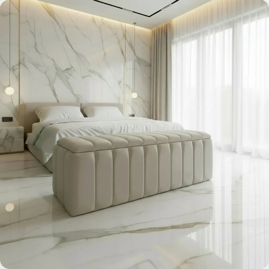 The Jumerah Ottoman is one of FI Interiors Ltd’s latest designs — a refined take on classic storage furniture, handcrafted with attention to detail and built to maximise both style and storage space.