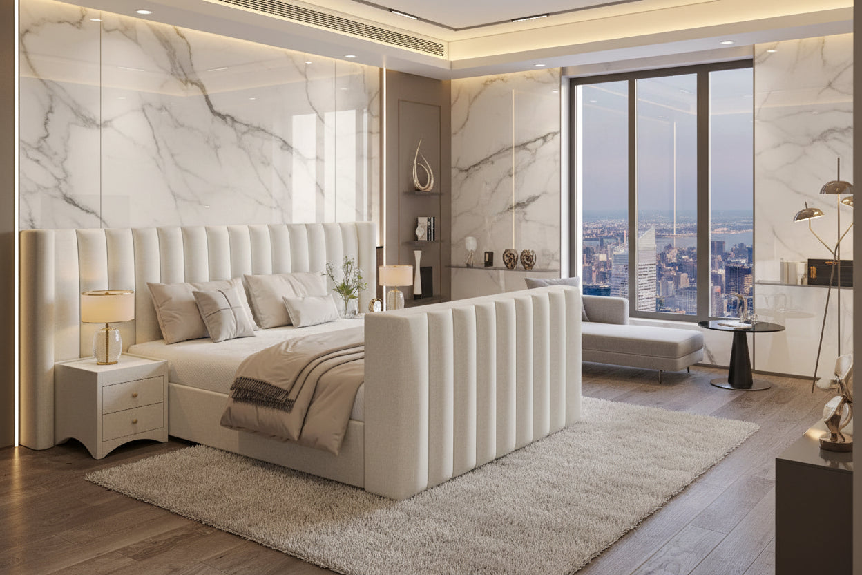 The Alisson TV Bed combines refined design, smart functionality and everyday comfort in one beautifully crafted centrepiece. Designed for modern bedrooms, it brings together soft upholstery, clean styling and innovative features to create a relaxing and luxurious atmosphere. Whether you're enjoying a quiet night in or starting your morning slowly, the Alisson enhances every moment.